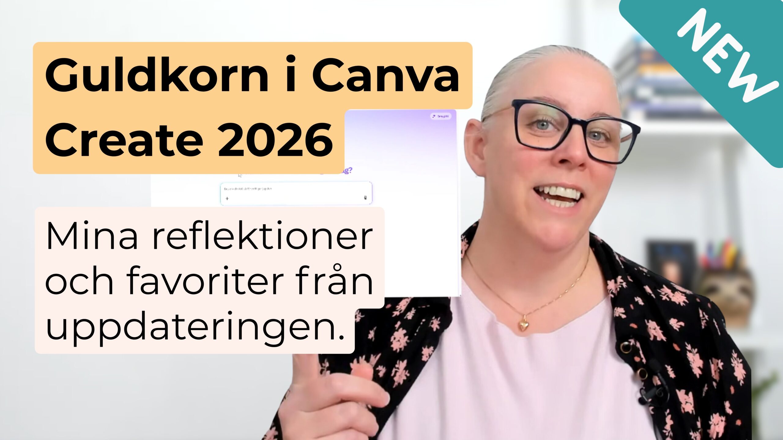 Häng med i mitt nyhetsbrev om Canva och bli lite bättre på Canva varje gång du läser. Nästan varje gång kan du också kolla på en utbildningsvideo om någon aktuell eller smart funktion i verktyget.